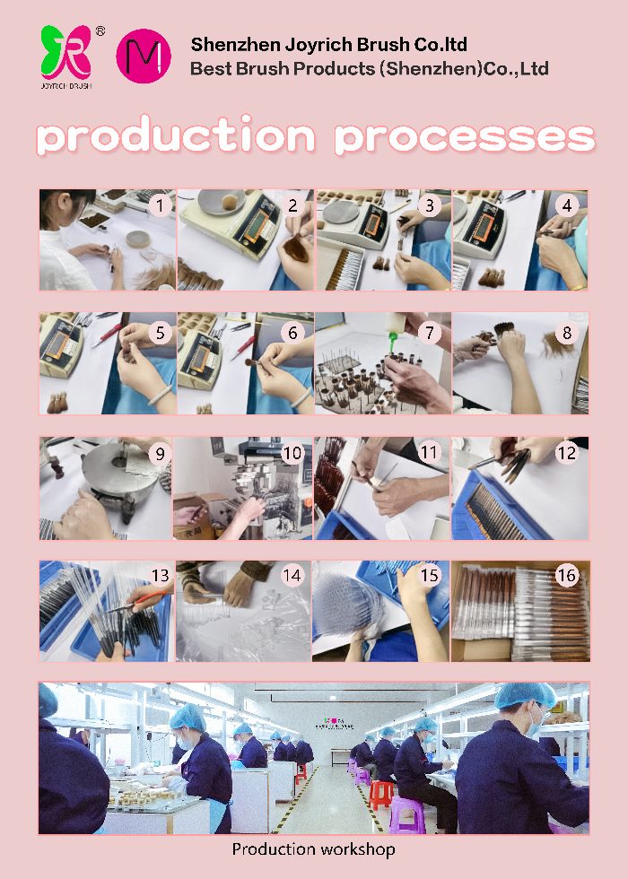 Borstarna genomgår limapplicering, sterilisering, upprepad försegling, torkning, rengöring för att ta bort herrelösa hårstrån och slutlig formning.